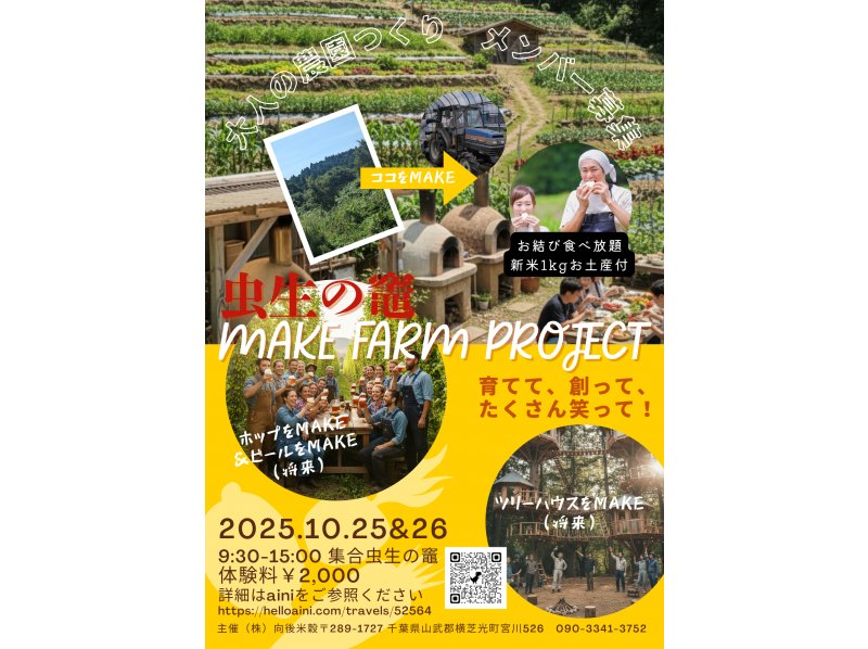 詳細【千葉・九十九里】世界一のおむすびと大人の農園つくり&新米お土産! 週末は農園つくりを一緒に体験しませんか? 都心から90分の菜園講座