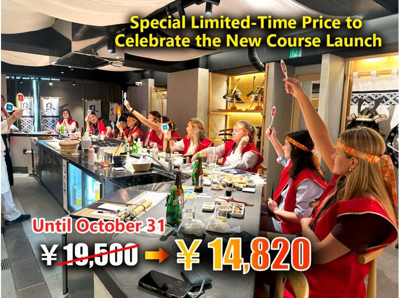 詳細職人が教える欲張り3種類の寿司体験コースと、職人の日本刀による太巻き実演ショー(3種盛りアペタイザー・日本茶&お水/無料)