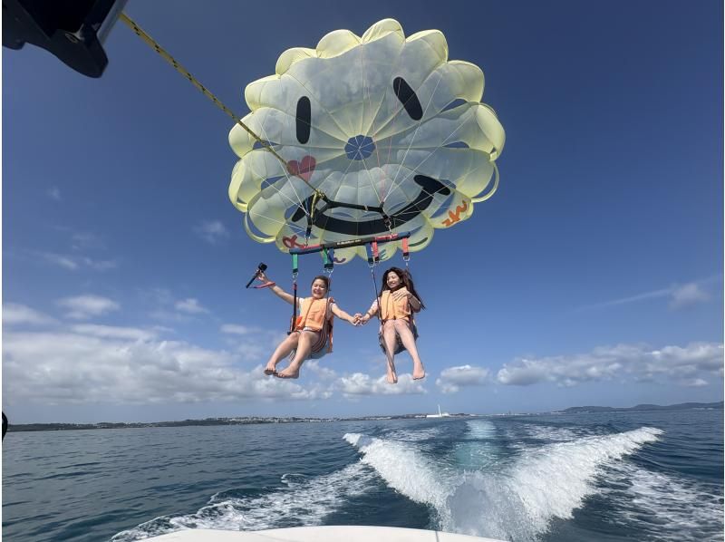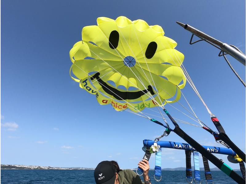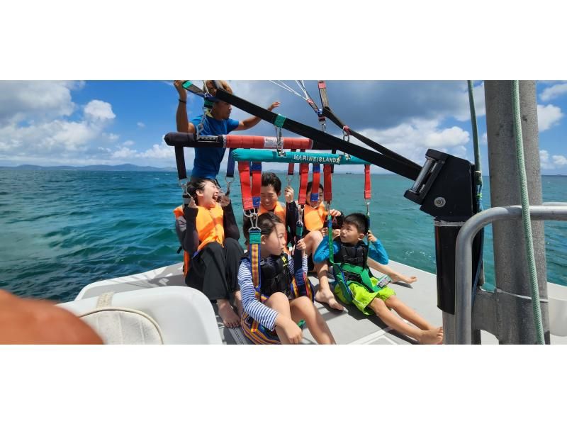 [大人気★海中道路エリア ] にこちゃんパラセーリング(150mロープ) 4歳から体験可能!☆沖縄最長300mもあり☆当日予約OK!